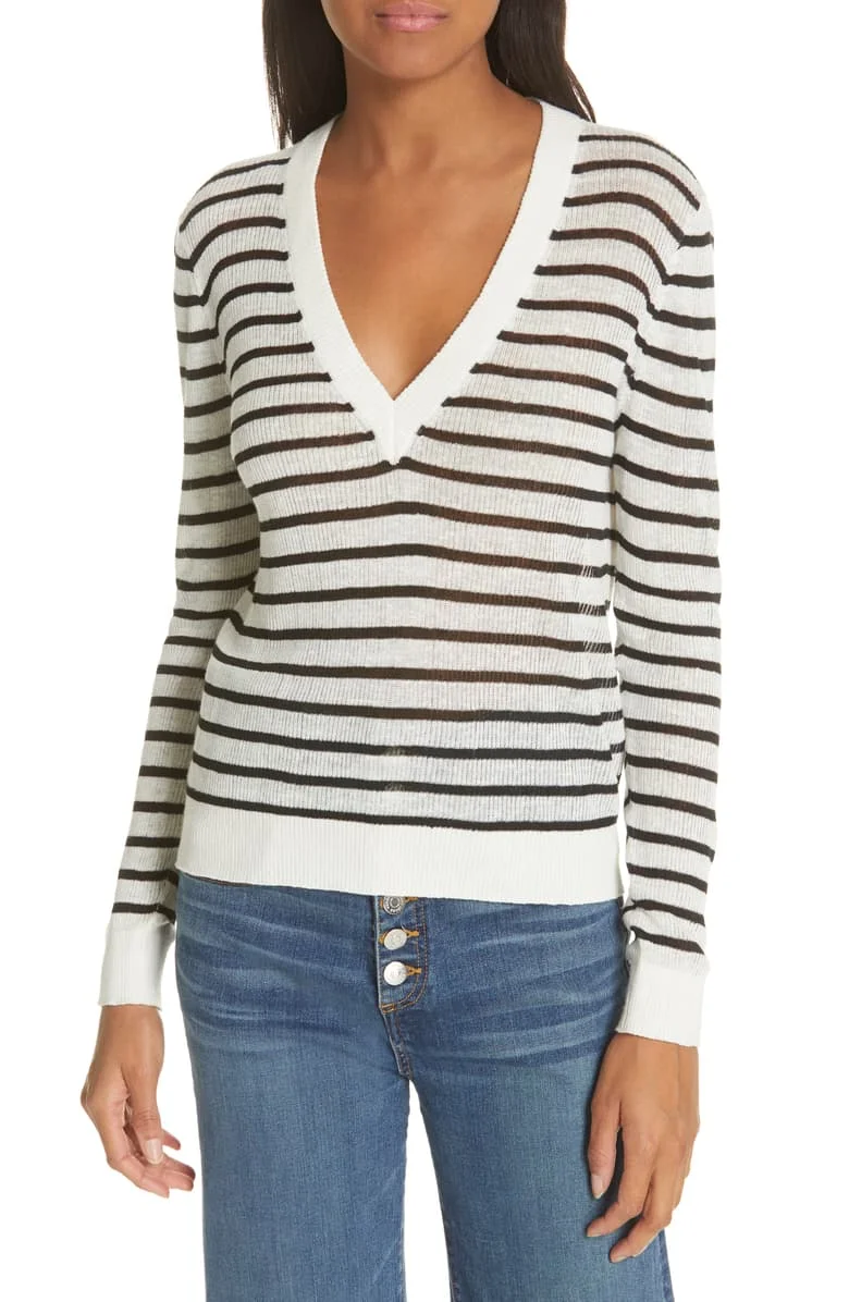 If youβve been reading Crazy Blonde Life for a while, you know that Iβm always cold, especially in restaurants! I love this top from Veronica Beard, because it has a summery nautical feel and long sleeves! Iβll wear it with white jeans!