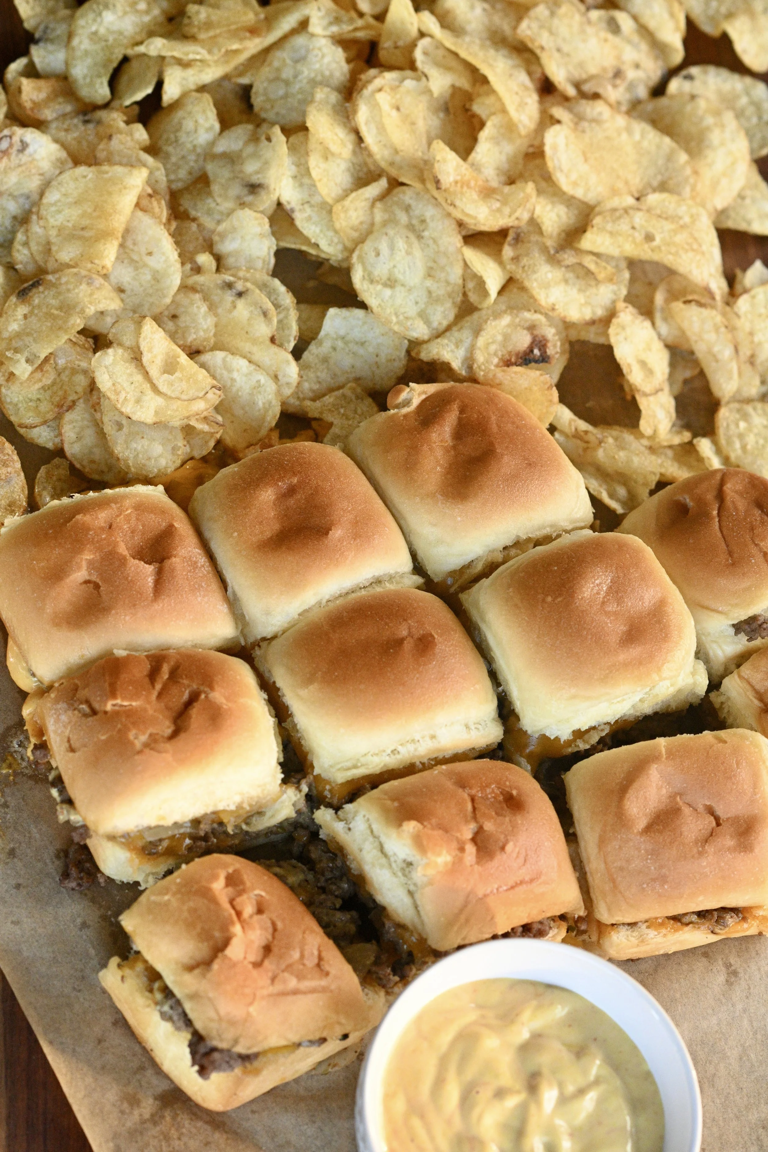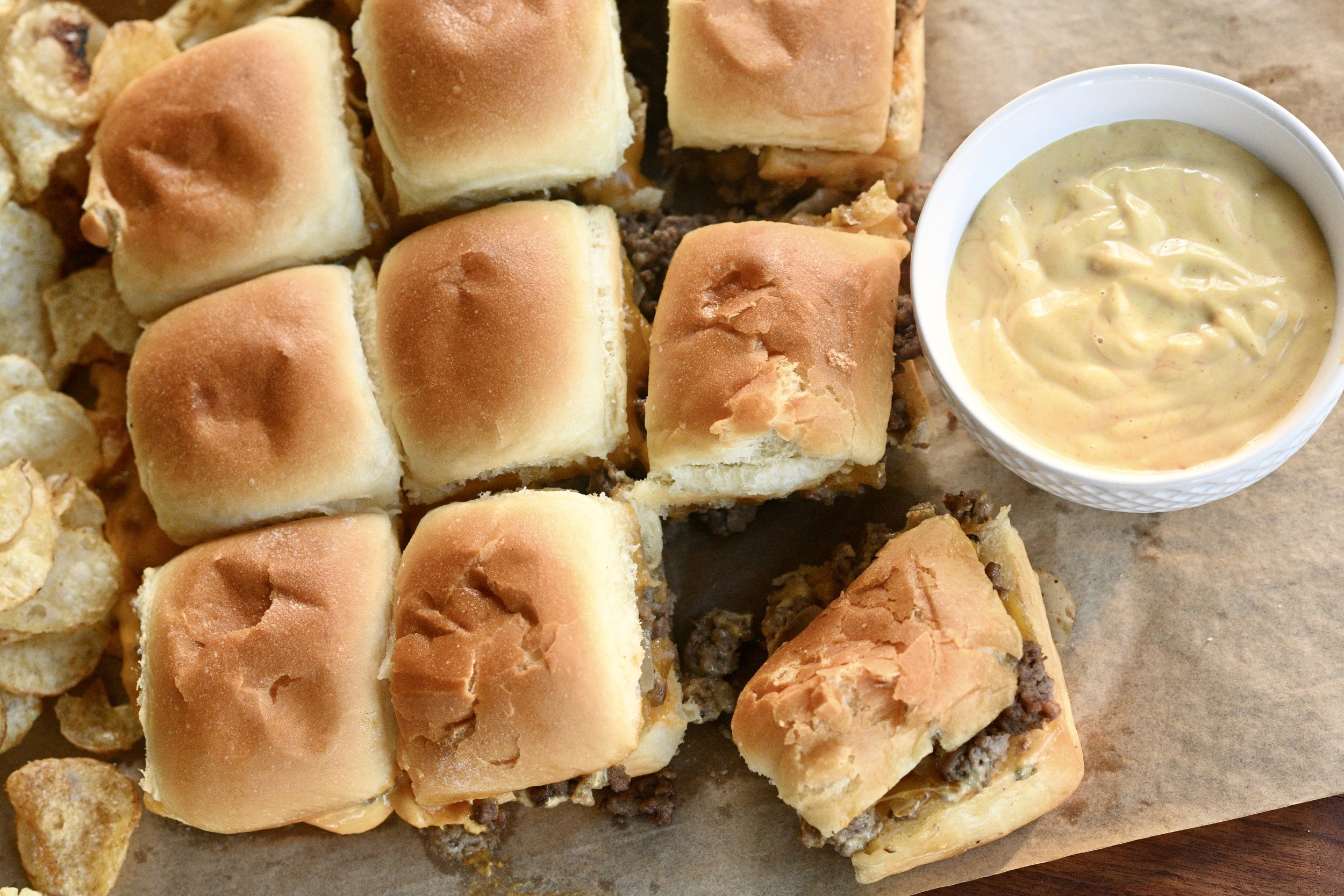I do love a good cheeseburger sometimes and I also really love the flavor of Hawaiian Rolls! I know theyβre not the healthiest but you have to make an exception at times and there is not better time to indulge in a fabulous Cheeseburger Slider than on Super Bowl Sunday! I couldnβt believe how delicious these sliders were when I tasted them and knew I had to share the recipe! Definitely kid friendly and so easy to make! These will feed a crowd and you can make them ahead and reheat! I used cheddar cheese but you could use American or a combination of whatever you like! You really canβt go wrong with these! I hope you make them and I hope you enjoy!