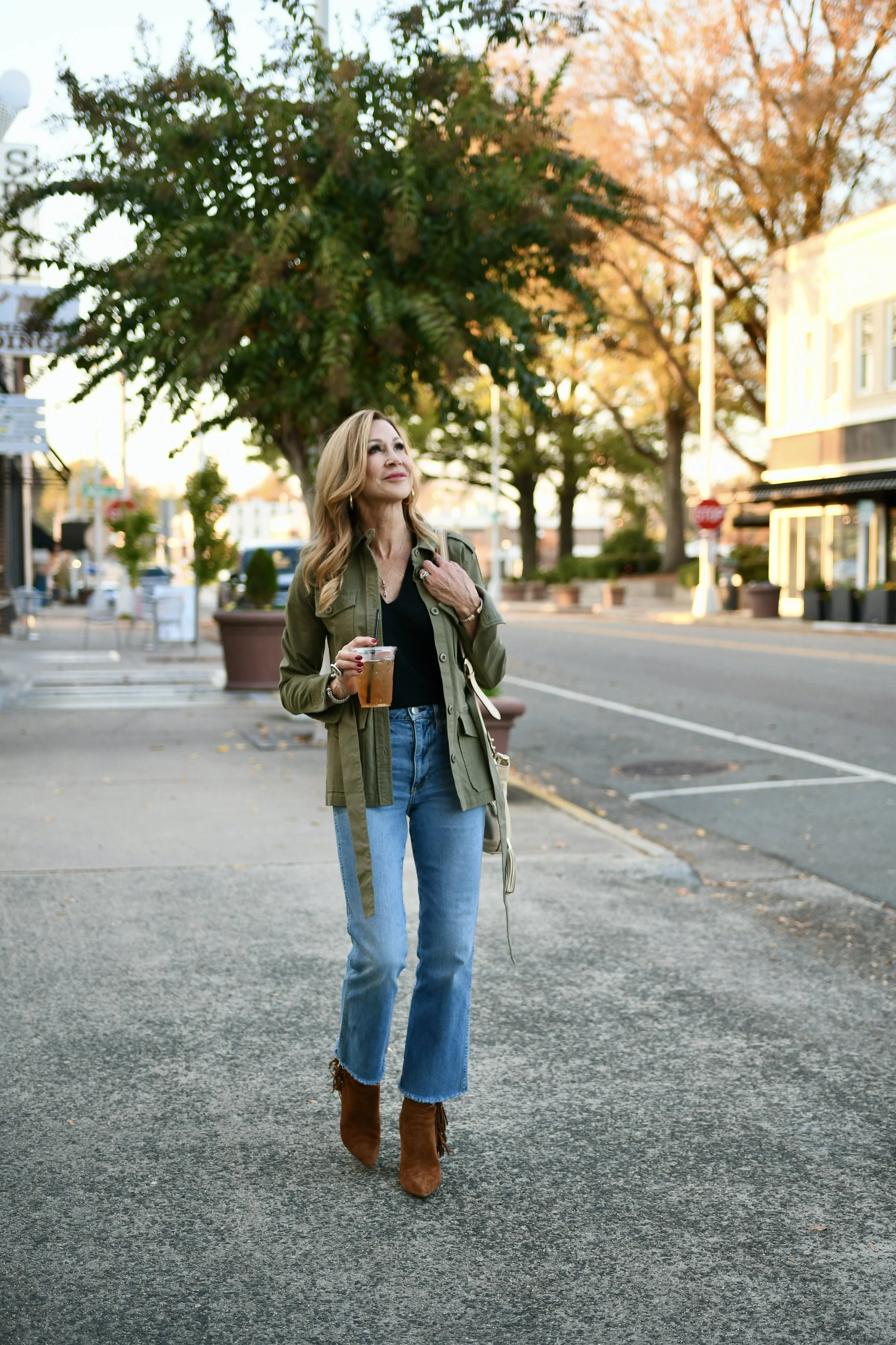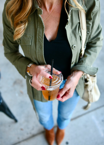 More and more lately, I’ve been relying on my capsule wardrobe pieces because they make getting dressed in the morning so much easier! One of the pieces I reach for often is this utility jacket! I’ve had this jacket for several years (similar jacket here) and it’s always perfect when I need an extra layer and extra style! I’ve paired the jacket with a black short sleeve sweater, tan suede booties and cropped straight leg jeans. My bag is also several years old and I’ve suddenly been wearing it with everything! I’ve linked a similar bag that is soo cute!