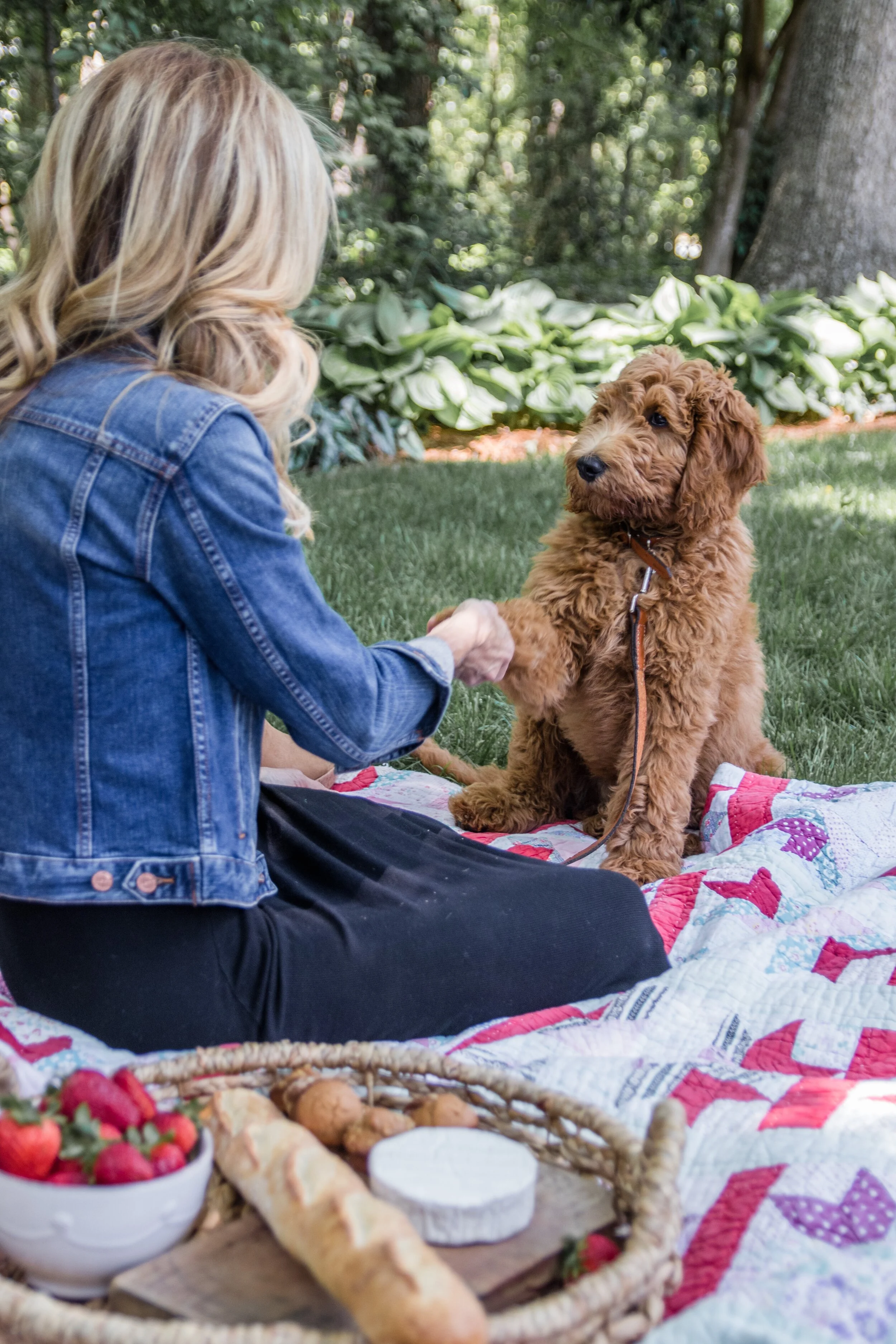 I’m not sure if Doodles all have sensitive stomachs, but Amos has been banned from any people food because nothing good ever comes of it. The day we had this picnic, he ate (stole) way too much people food (including strawberries) and had a tummy ache. He eats dog food mixed with eggs, ground chicken or turkey, ground lamb and vegetables. I make a different concoction of meats and veggies with no seasoning and add it to his dog food throughout the week.