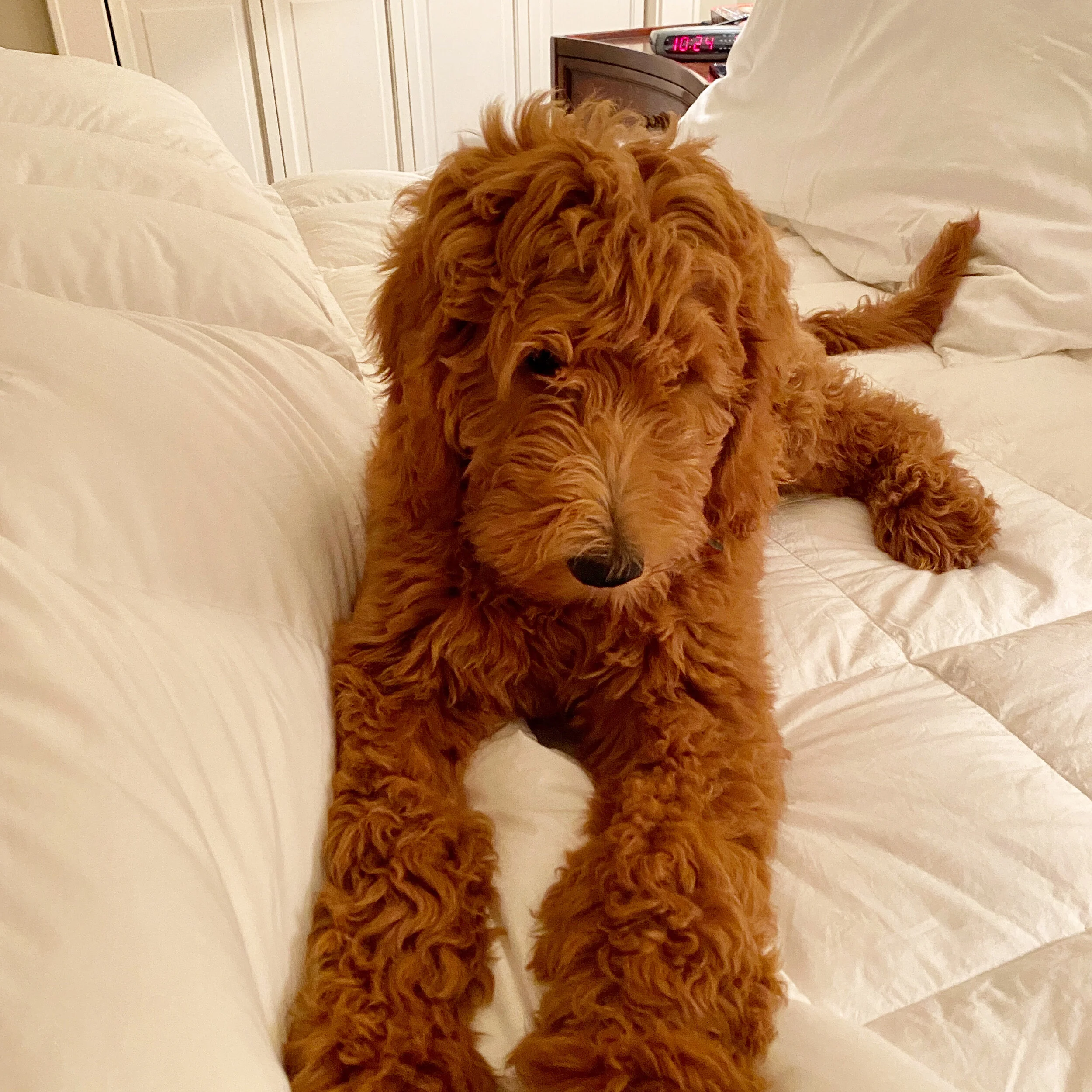 One thing that has taken up a good bit of my time during quarantine is Amos our Golden Doodle. When we first started talking about getting a dog, we wanted a mini Golden Doodle, but then when Amos (not a mini) became available and the quarantine had just begun, we decided this would be a really good time to get a puppy, so we went for it! He has been one of the best things that could have come out of this situation! We’ve all fallen in love with him. I’m not sure if I’ve said that our daughter Rebecca has been home for about 6 weeks now, so she has also been able to get to know Amos and I’ve loved being able to spend time with both of them! He is the best puppy…when we got him, he was mostly trained and has had very few accidents. He is so good natured and loves everyone he meets. Rebecca and I take him for long walks almost every day and he’s able to walk so much further now than when we first got him! He’s probably doubled in size but I will know for sure on Friday when he goes to the vet.
