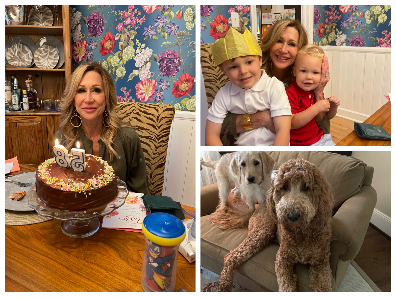The past two weeks have been amazing but also jam packed and exhausting for me! I got home on May 1 from visiting my daughter Sarah in Germany feeling very jet lagged, but so happy that I was able to travel and spend time with her and my sweet little Bristol. The next couple of days were a blur, but I still worked and even did some blog pictures. May 4 was my 58th birthday and my daughter made a delicious dinner for me and Graham and Hudson made me a beautiful birthday cake! The celebration continued with an amazing dinner on Wednesday at a restaurant called Machete. I highly recommend eating there if you’re local…it was one of the best meals ever! My advice is to go hungry and enjoy every bite. On Thursday, my sister and her husband took us out to dinner (it was a week of eating), and by the time Friday rolled around, I didn’t want to eat or go out anywhere, but Sunday was Mother’s Day and we went to brunch! Last week, I jumped back into blogging with both feet. I had a photo shoot on Thursday and did video and photos on Friday. I also started going to yoga again, and working out with my favorite trainer at a new gym. In between all of this, my hair color needed to be done, my nails were horrible and needed a fill in, I had a Hydrafacial and got my lashes done! Oh and did I mention that we got a new puppy? Whew…by the time yesterday got here, I was pooped! My philosophy…life is good when you’re busy!