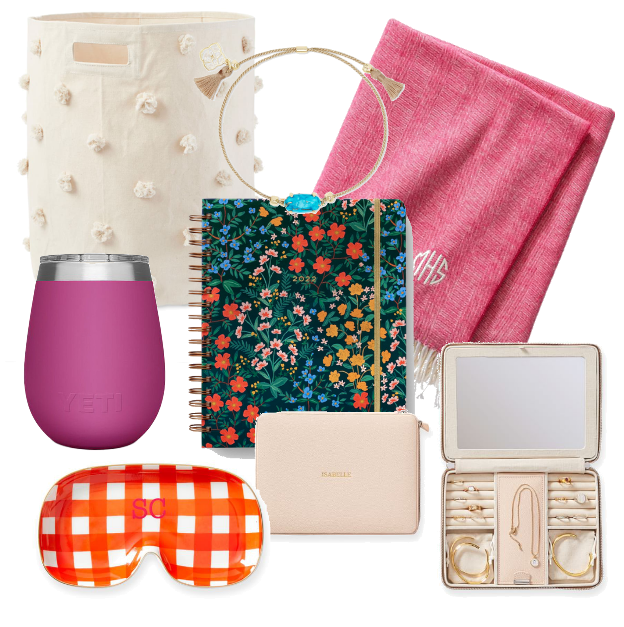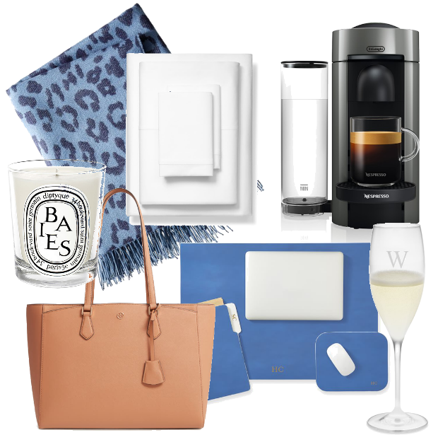Mark & Graham Leopard Throw Blanket | Boll & Branch Classic Hemmed 300 Thread Count Organic Cotton Sheet Set | Nespresso VertuoPlus Coffee Maker & Espresso Machine | diptyque Baies/Berries Candle | Tory Burch Robinson Saffiano Leather Tote |Italian Leather Desk Blotter | Riedel Vinum Champagne Flutes
