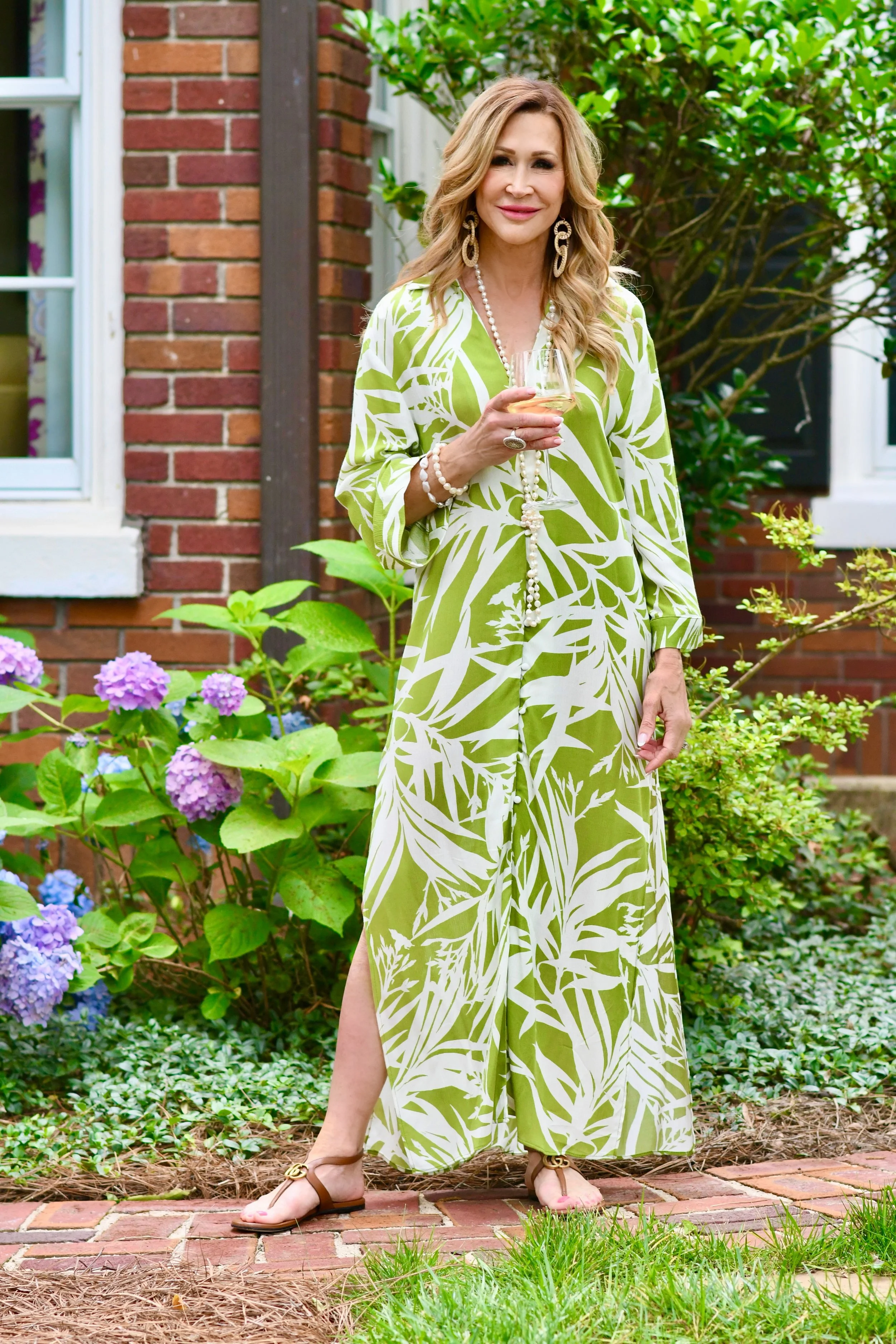 A caftan with sandals is a look that I’m all in for these days! It started a couple of summers ago when I bought my first caftan that wasn’t a swimsuit cover-up…I felt so dressed up, but comfortable at the same time. Caftans are easy, laid back and effortless but easily elevated with accessories and shoes!