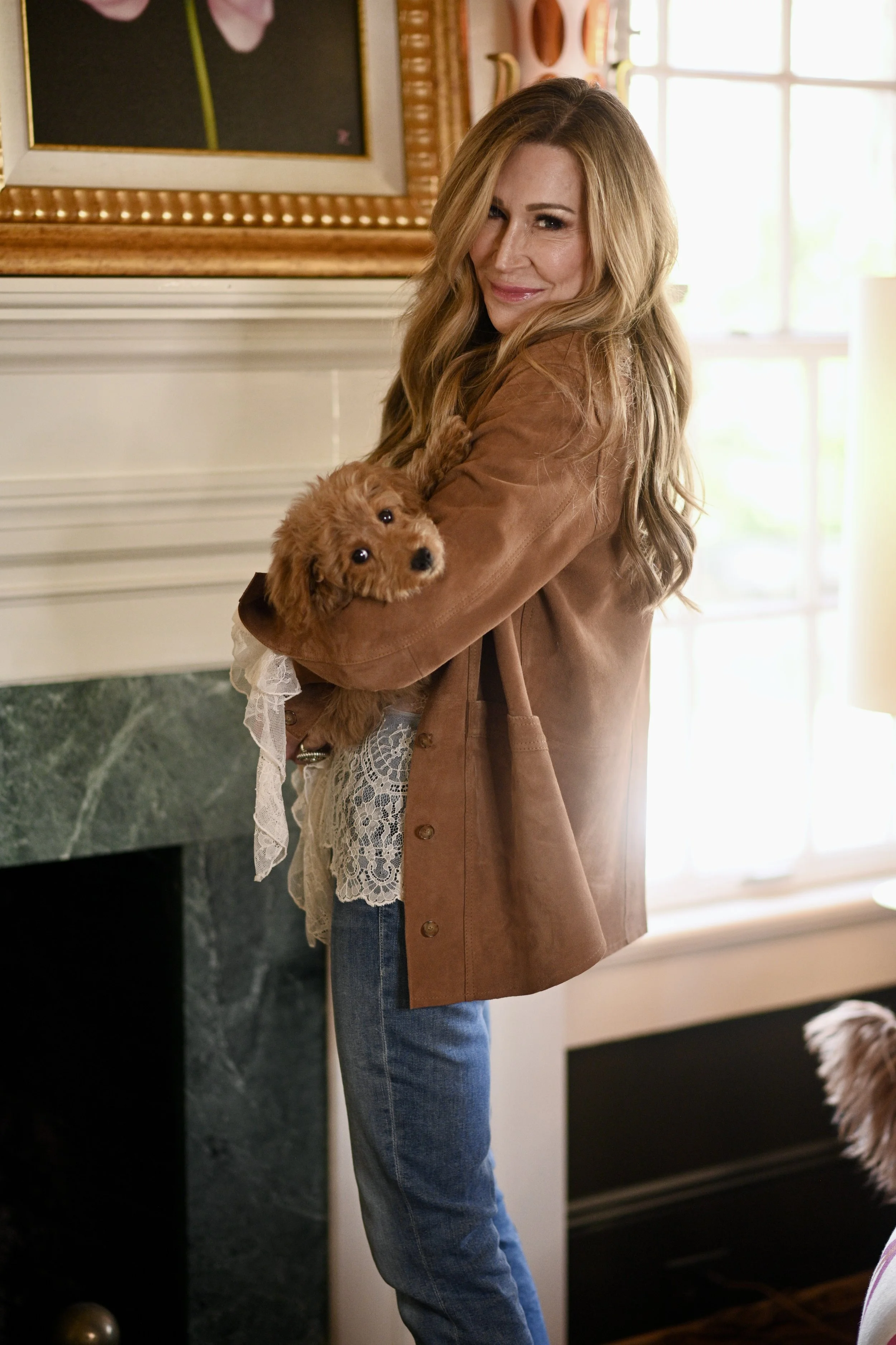 This is maybe one of my favorite outfits ever! I really love the contrast of the lace blouse with the suede jacket. The earrings and necklace add just the right amount of boho to this fun look and the Mother straight leg jeans are my favorites. The boots are older suede ones with fringe from Veronica Beard that fit the outfit perfectly!