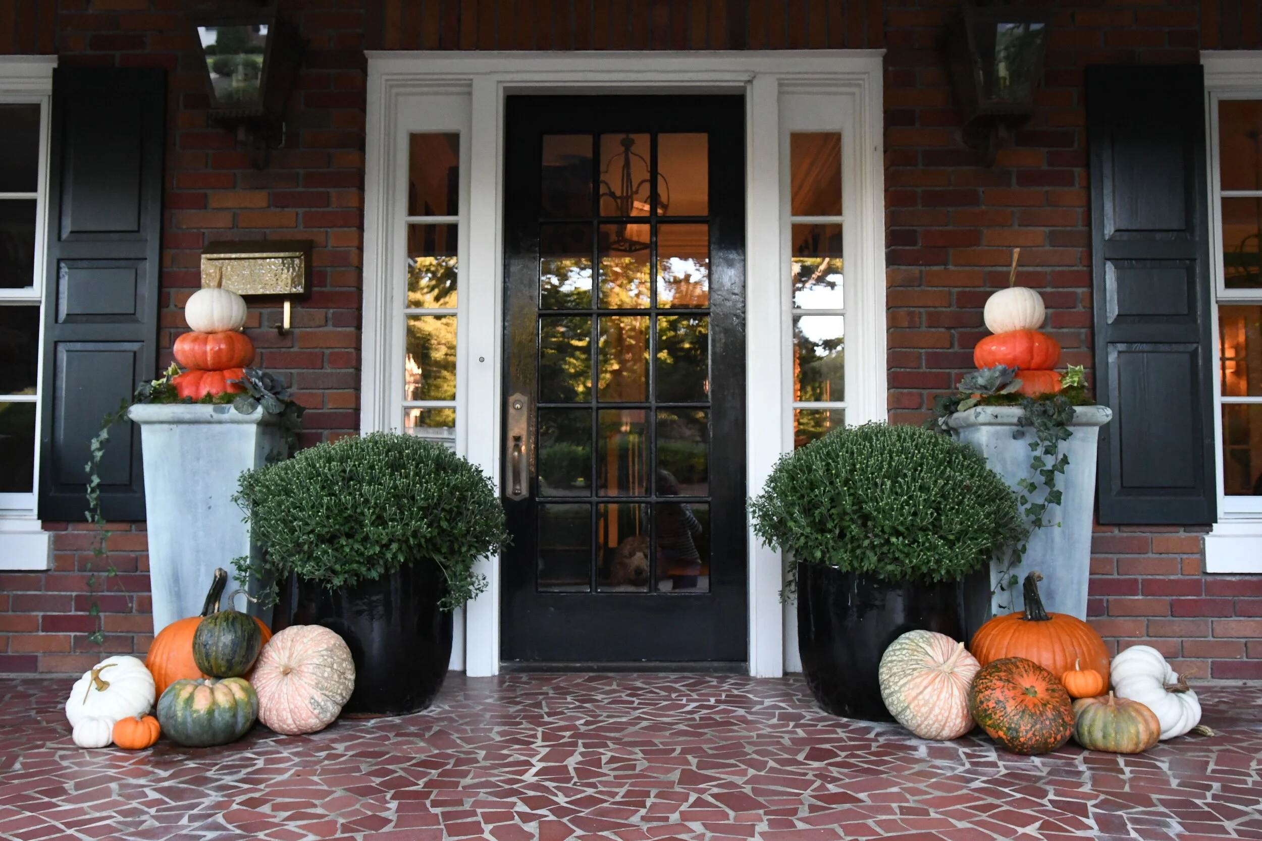 I have several. of these pretty velvet pumpkins that are placed around the house. I don’t do nearly as much inside as I do outside, but I think small touches make a big impact! Once October is here, I’ll add a few fun Halloween things for my grandsons.