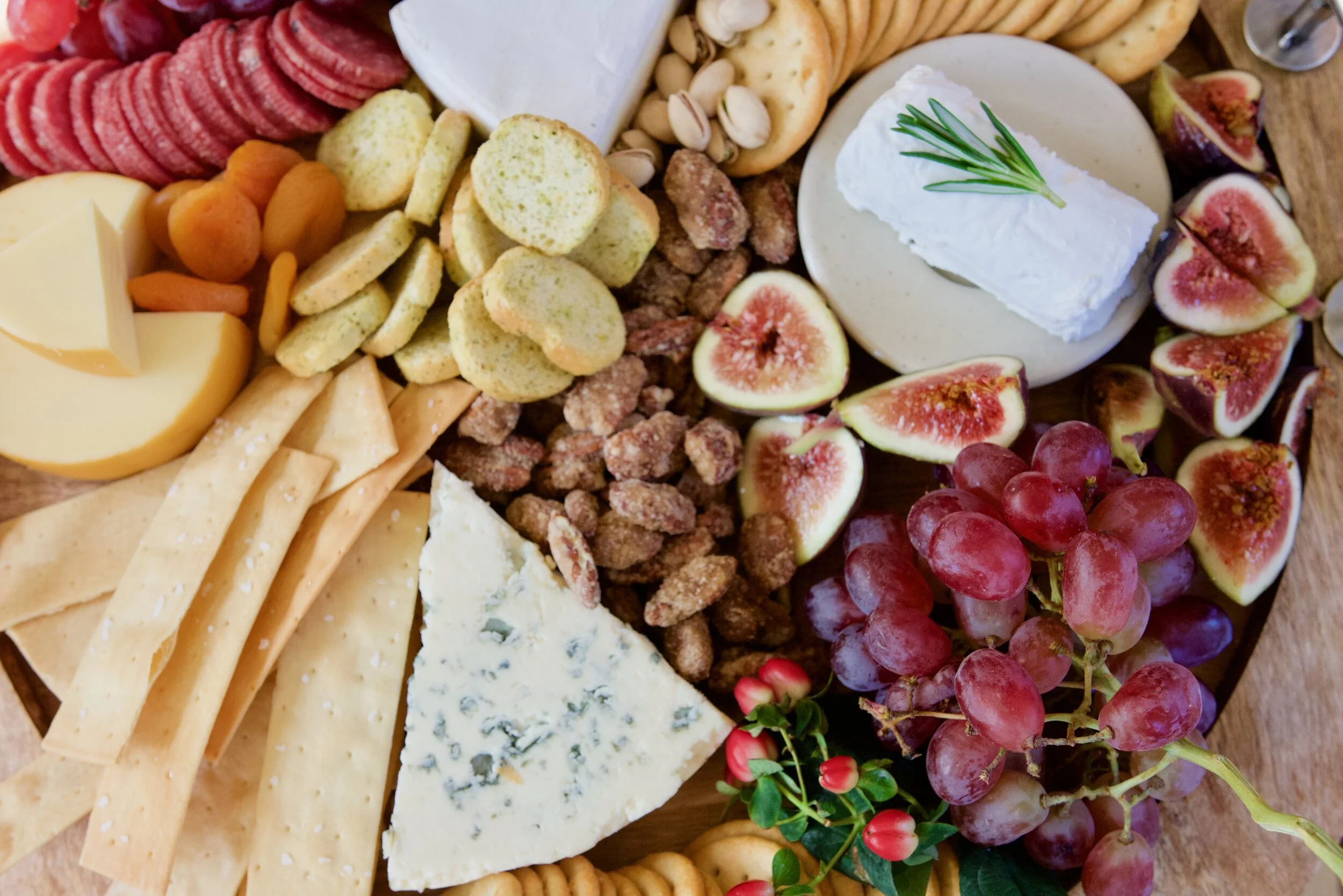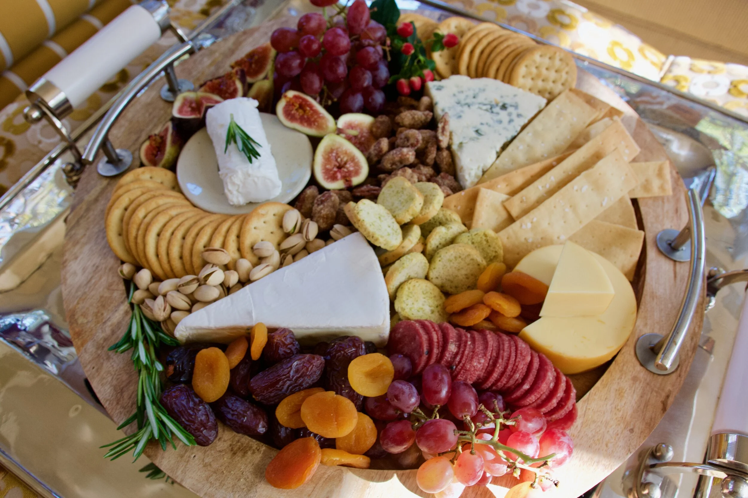 I created this fall cheese platter yesterday with dried apricots, figs, red grapes, salami, pistachios, candied pecans, goat cheese with rosemary, smoked gouda, brie, gorgonzola and assorted crackers! It was beautiful and delicious!