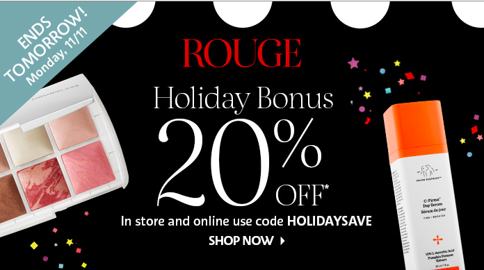 Sephora has been having their annual Rouge Sale and it ends tomorrow Monday November 11! Shop now for great deals on stocking stuffers and your favorite products. Click here to read more about how to be a Sephora Rouge member.