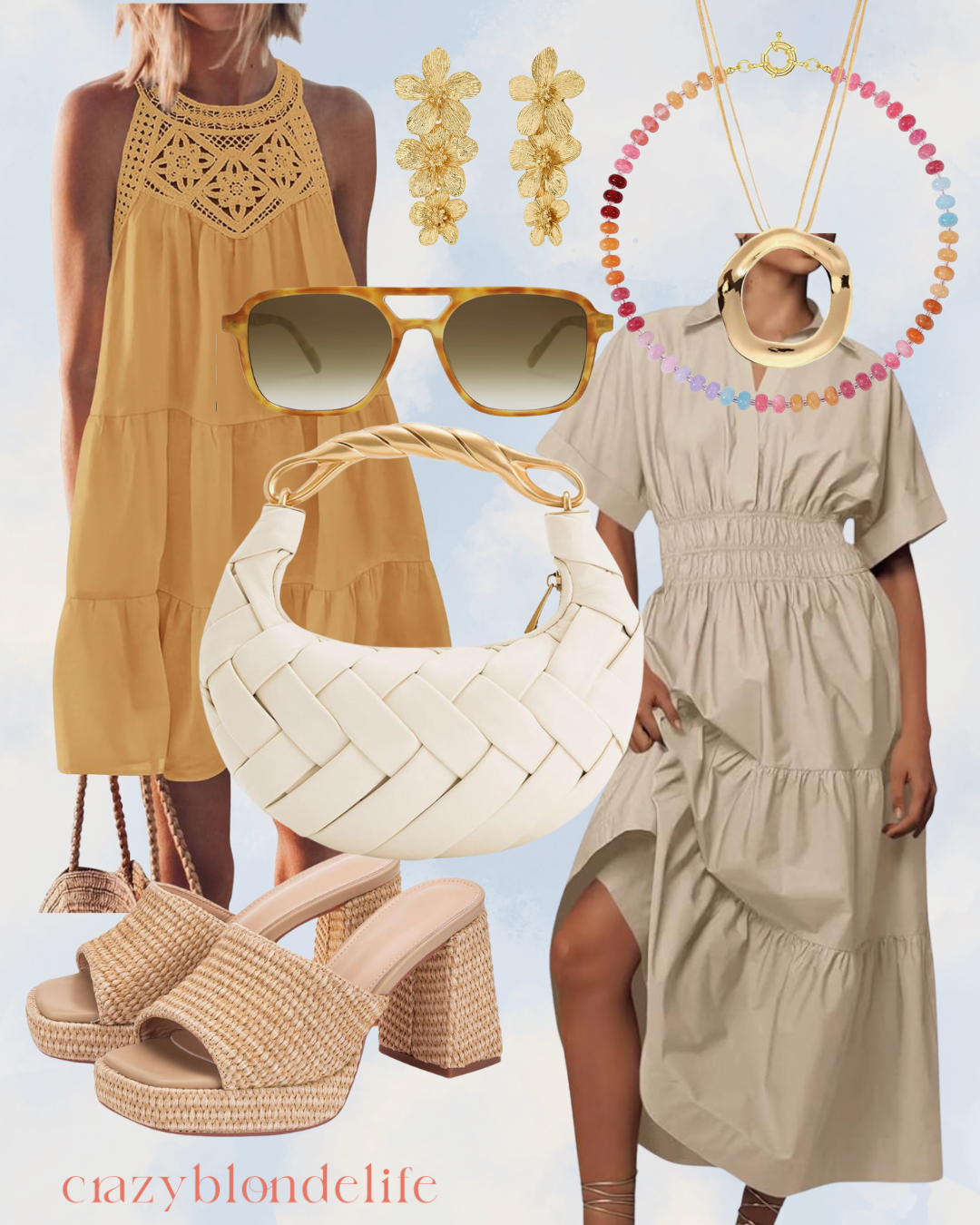 Well…even with the humidity and temps through the roof, it’s still fun to get dressed! The looks I’m sharing today are too much fun and there’s something for every taste! From a boho look with beaded jewelry, to a refined lady in St. Tropez look to an easy breezy two piece set that’ll take you anywhere - I’ve got something for every taste! Even after soooo many collages, I am still amazed at what I find on Amazon! Enjoy!